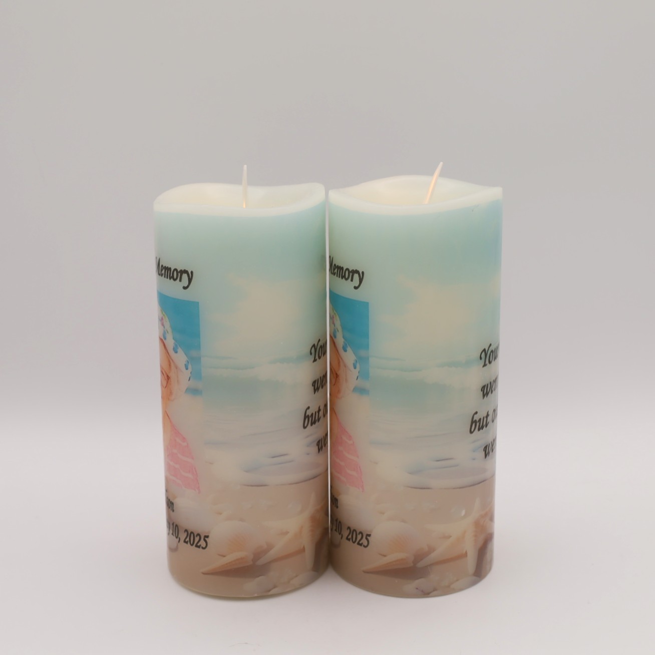 Each candle is made to order allowing you the availability to custom design each candle making these the perfect memorial option or custom gift. For longer use, keep away from heat and water.